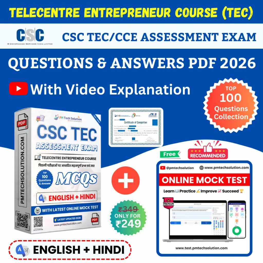 [English + Hindi] CSC TEC Assessment Exam Questions & Answer PDF